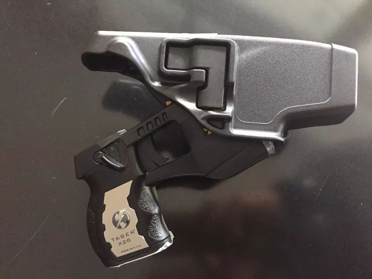 使用完毕后,按住弹体上圆按钮,拆下弹体。每把泰瑟枪都配有专用的枪套。 使用时先插入枪套中部,而非普通枪套的上部。 这一设计降低了枪支被突然抢夺的风险。