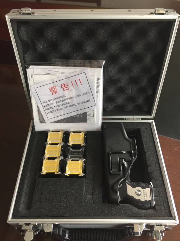 当我们遇到上述场景时,一把泰瑟枪在手,问题可能就会迎刃而解了。 “什么是泰瑟枪” 泰瑟枪是美国人发明的一种非致命性武器,被美国警方大量使用,主要是为了降低一些非必要情况下使用普通枪支可能造成的误伤。泰瑟枪的“子弹”是两枚头带倒钩尾拖极细金属导线的小飞镖,靠压缩气体发射,射速为60米/秒,射程约6.4米,击中目标时能够瞬间发出5万伏的高压脉冲。泰瑟电击枪的电极之间形成的脉冲和人体控制肌肉收缩的神经信号极为相似,但强度上占据了压倒性的优势;而且这种脉冲信号每秒会重复20次,一旦击中目标就会使对方的肌肉处于强直收缩状态,失去动作能力和平衡而倒地。它可以隔着5厘米厚的衣服放电,并在5秒钟内多次放电。“子弹”的电压不会传输到下一个人身上,“就算歹徒挟持着人质,歹徒中枪后人质也不会被影响。”泰瑟枪发出的电压虽大,但电流只有160毫安,仅由两节锂电池供电,不会致死或造成永久性创伤。通俗讲,它的原理和压电打火机类似。人被触时电压很高,电流却很小。