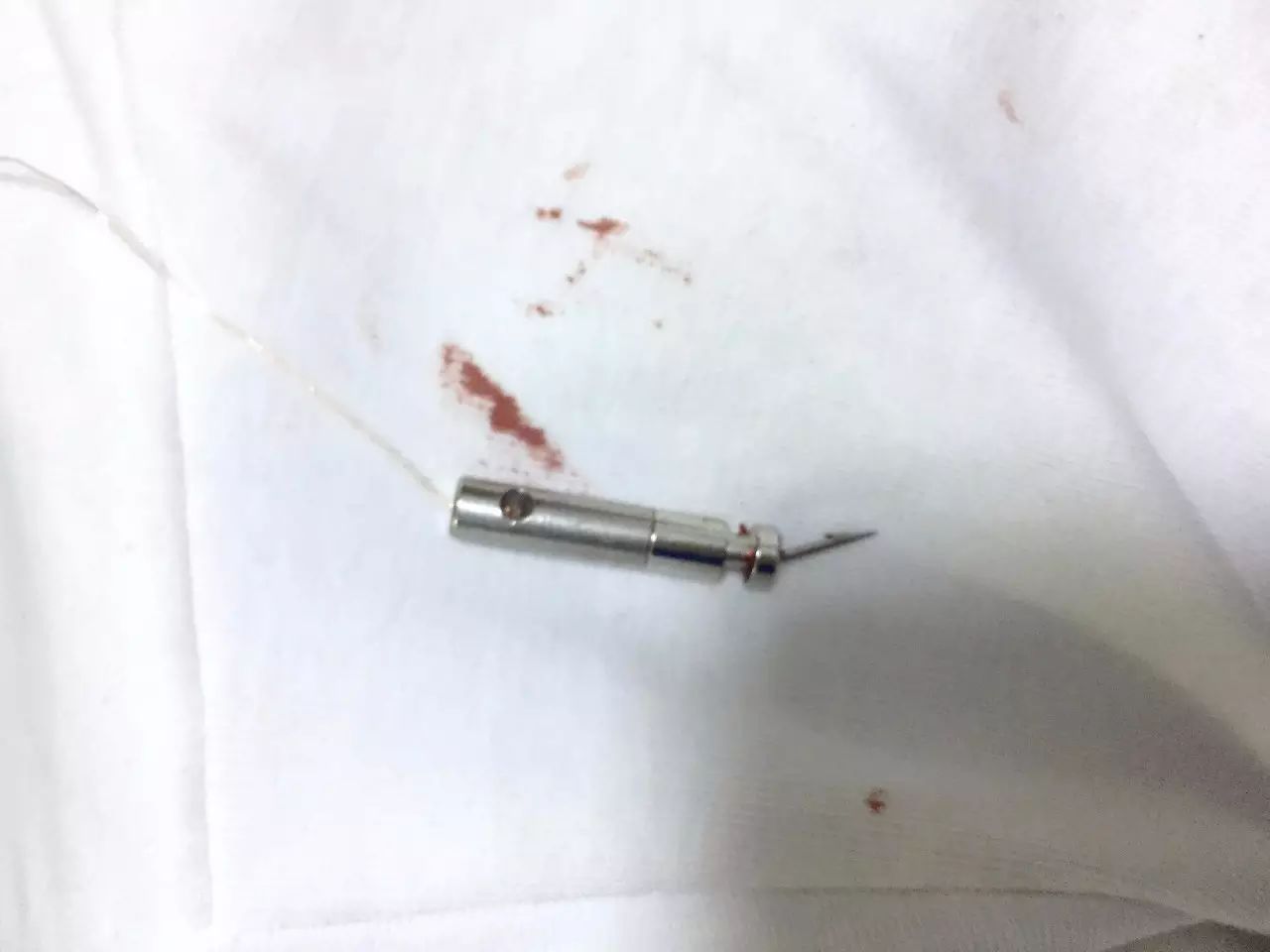 使用后的电击针,后面是铜线,注意在拔的时候不要被刺伤